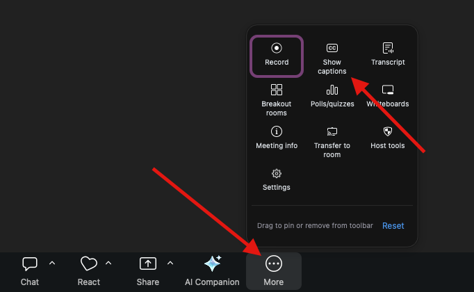 Zoom now offers a closed captioning feature, which offers live transcription for an ongoing meeting. This does not record the meeting directly, it only allows students to see subtitles as the meeting runs in real-time. Information on the Zoom website regarding this feature can be found on this page.
