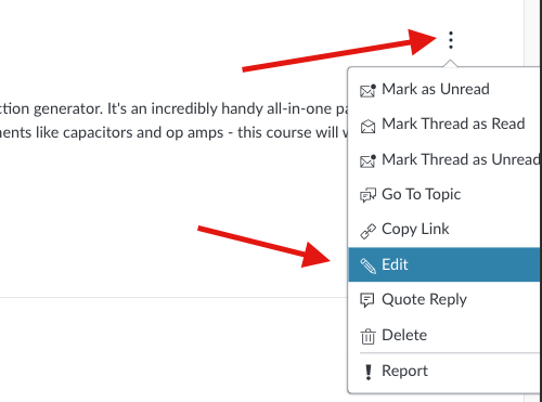 Once there, click the three dots in the upper right hand area of any comment you want to place your video in, and click "Edit":