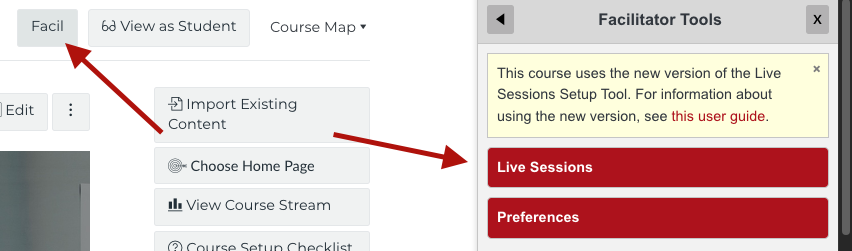 - Go to your course and click the "Facil" button near the top to open the tool as a sidebar on the right.